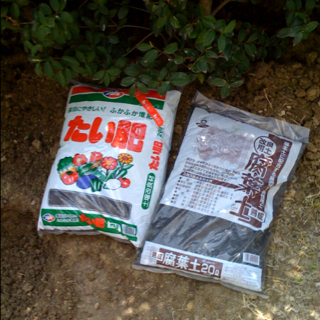 とりあえず、土壌改良のため、腐葉土20L、堆肥20Lを購入してある。