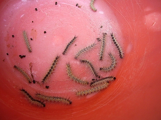 大発生している!毛むくじゃらの方は、少し前にはほとんど見かけなかったのに。いまではそっちのほうがちっさいのもたくさん茎に集まっている、、。
