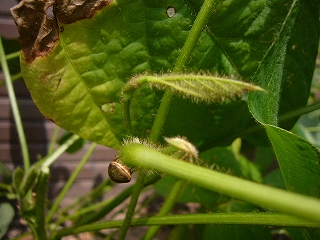 素人の推測だが、エダマメの風通しが悪いのかもしれない。