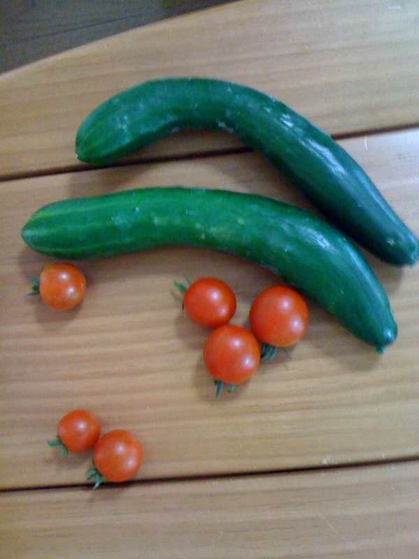 キュウリとミニトマトは、本日のサラダに投入されました!