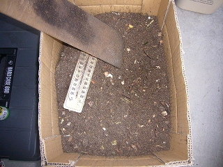 「米ぬかは肥料としていいらしいけど、そのまままくと発酵熱がでるから、いちど、発酵させてからのほうがいい」といっていた。ダンコポちゃんのなかの米ぬかは発酵終わって落ち着いている。だから大丈夫だろう。