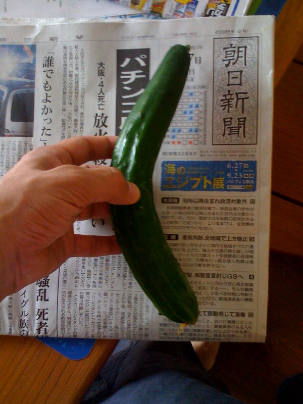 キュウリのほうも立派な迷走ぶりで、どうしていいかわからず、ほとんど放置。汚い葉っぱやこみいった所は適宜取り除いていますが、、放任栽培になっとる。まぁええ。